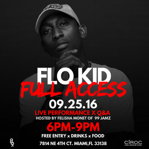 Join us Sunday , September 25th at the 8&9 Showroom for Miami's own Flo Kid "Full Access". You'll be treated to an intimate evening with a live performance and Q & A with Flo Kid hosted by Felisha Monet. Food and drinks will be provided. Come thru and enjoy. 6pm-9pm.