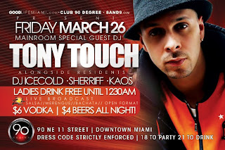 8&9 Event this evening @ 90 Degree in Miami! Downtown, don’t miss it! Tony Touch spinning live!!! Email alain@8and9.com for guest list, reservations etc
