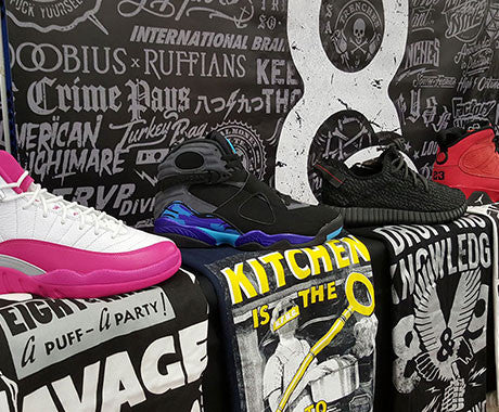 Along with our sneaker match tees, we brought out a limited amount of items from our Narcos collection and more. These were set aside specifically for Sneaker Con Cleveland. So if you were lucky, you got a rare or sold out item unavailable online or in stores! Shout out to everyone who copped. I also brought out a few pairs of kicks to resell. I had Supreme Vans, Pirate Yeezy 350 Boost, Pink Jordan 12s and Jordan Aqua 8s. I sold everything besides the Aquas, and even got my hands on a pair of Jordan 9 "Motorboats" in my size. Sold my Yeezys under market, I hate haggling, had most of my kicks sold by 3pm, with 4 hours to spare to concentrate on 8&9 lol. Winning, for sure. All in All, I gotta say it was a good day. ( Ice Cube voice)