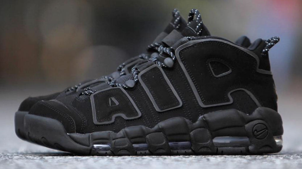 Originally released in 1996 Nike Air More Uptempo celebrates its 20th anniversary of Scottie pippins signature sneaker. The Shoe comes in a Triple black colorway,highlighted by 3M reflective accents on the shoe’s trim of the “AIR” branding across the side panels. Other features includes striped reflective laces and a Black rubber out-sole. Featuring: