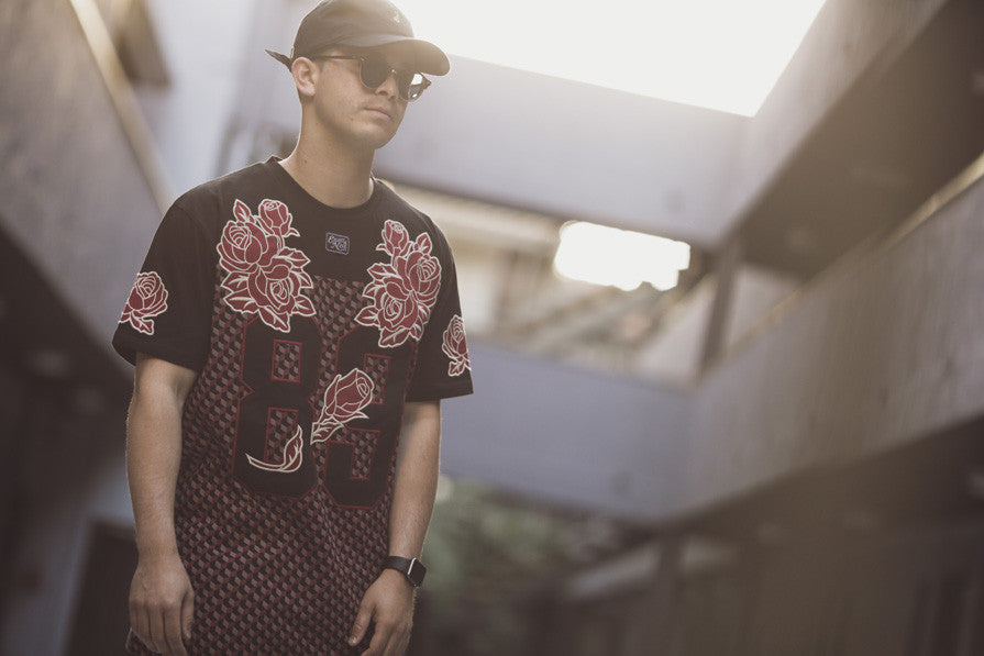 New from the Rebirth Collection this Sanctuary Mesh Baseball Jersey in maroon. Classic batting practice style, embroidered patch on the chest and sleeved. Peep the Super Fine Ready rolled label. This is a staple piece that won't last long.