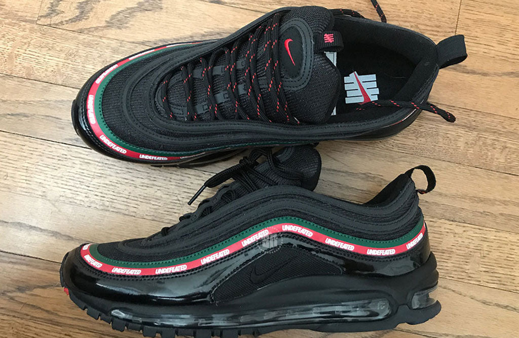 UNDEFEATED is collaborating with Nike Sportswear on an Air Max 97 for the celebration of their 20th anniversary. Here is the first look at the shoe that features an all-Black upper with Green and Red accents on the side panel as reference to the shoe’s connection to Italy. UNDEFEATED branding is represented on the red stripe, insole, and tongue pull-tab.
