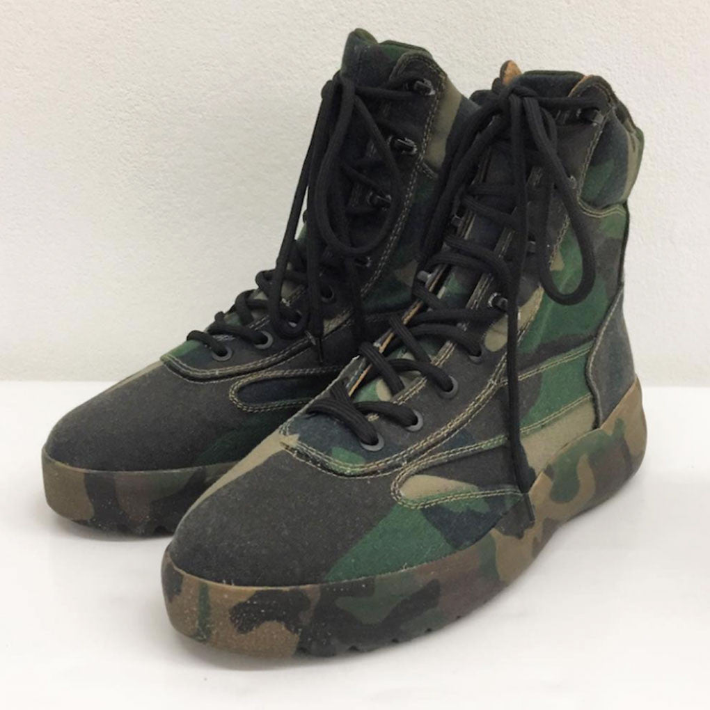 Here is the first look at the YEEZY Season 5 Military Boots. Kanye West debuted YEEZY Season 5 earlier this year at Pier 59 in New York City. A few silhouettes of the YEEZY season 5 boots have been released, this version comes in camoflauge.