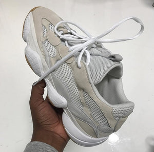 The YEEZY Runner was officially unveiled in New York back in February.The sneaker is not apart of th Adidas line and takes on some similarities to the Raf Simons x adidas Ozweego silhouette as well as the Nike Air Max '95 and Air Jordan XI Low IE. The sneaker comes in a neutral toned mesh base complete with nubuck khaki overlays, a leather mudguard, white grooved midsole, and gum bottom outsole. Stay locked for more info, let us know if your feeling these.