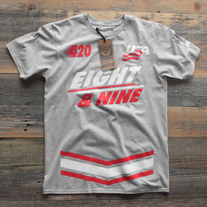 2014 hockey inspired USA 420 graphic jersey tee. Tribute to the greatest game on earth Team USA 420 Jersey. Heather/Red/White perfect shirt to match Cement 3s. #8and9llife Get this one while you can. S-4X