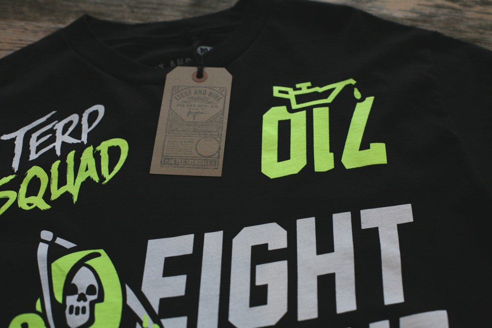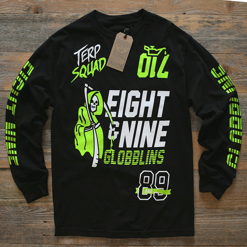 By popular demand Terp Squad heavyweight long sleeve tee. Black/Volt. Peep the details. Globblins, SlabDab. #8and9life