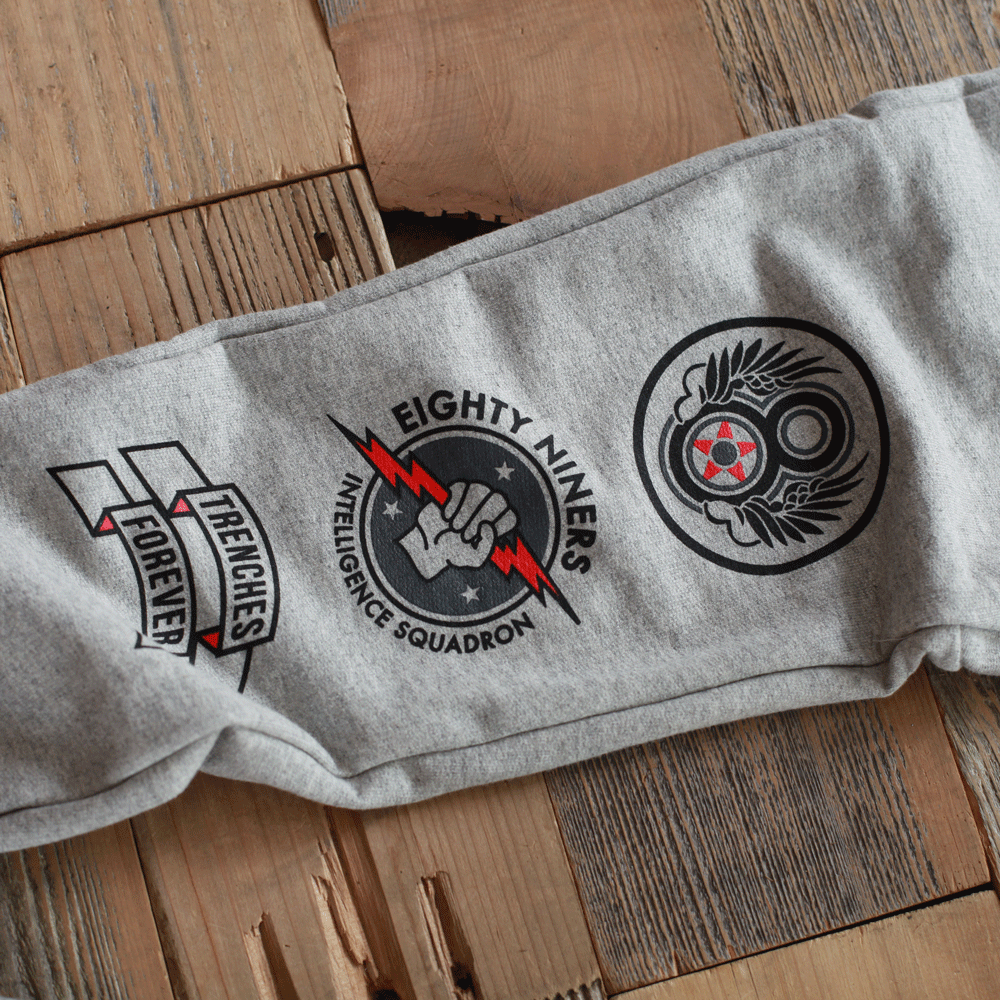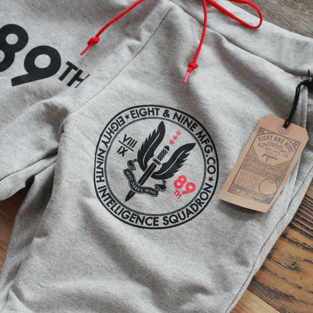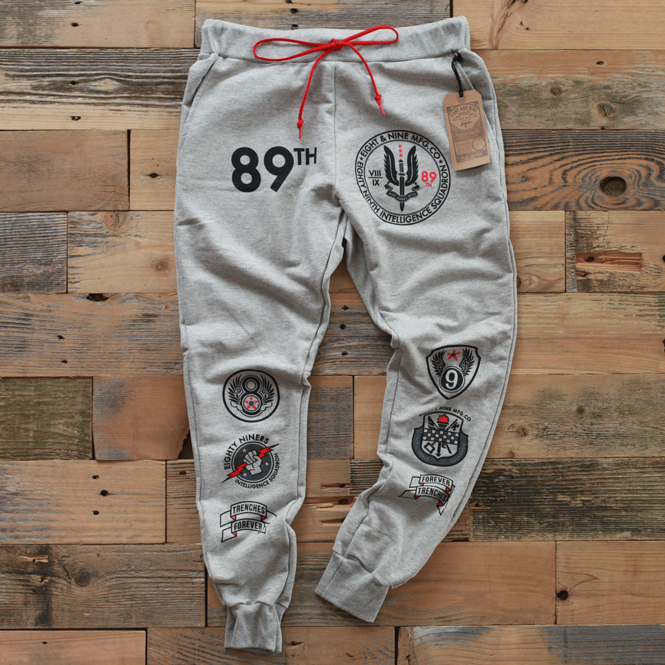 New for Spring '15. 89th Intel Squadron Premium French Terry Yard Sweats. Classic cement color scheme. Eighty Ninth Intelligence Squadron. Brain Gang World Wide. Super luxe 100% cotton french terry sweat pants made in the USA. Modern tailored fit. Slight drop crotch, great sweatpant to match the 89th Intel Squad heather long sleeve tee. #8and9life