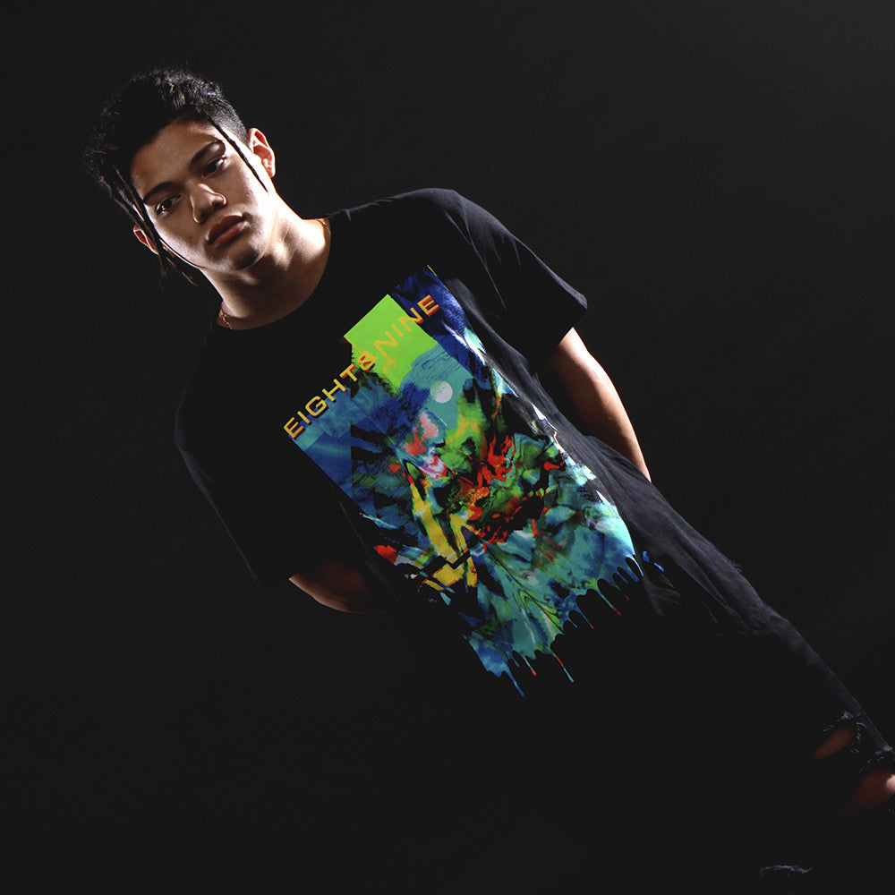 Inspired by '92 this digital glitch Adrenalize piece is a must cop. 14 colors on premium stealth black cotton. Slightly extended length (not a dress), with a curved hem and modern fit.
