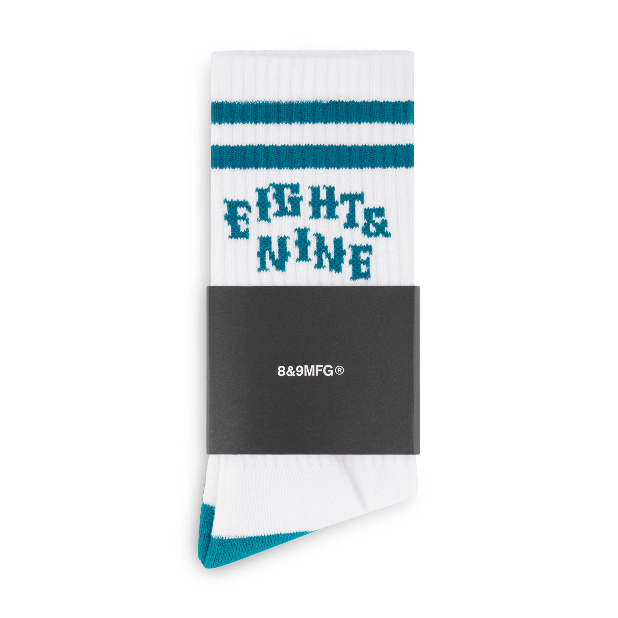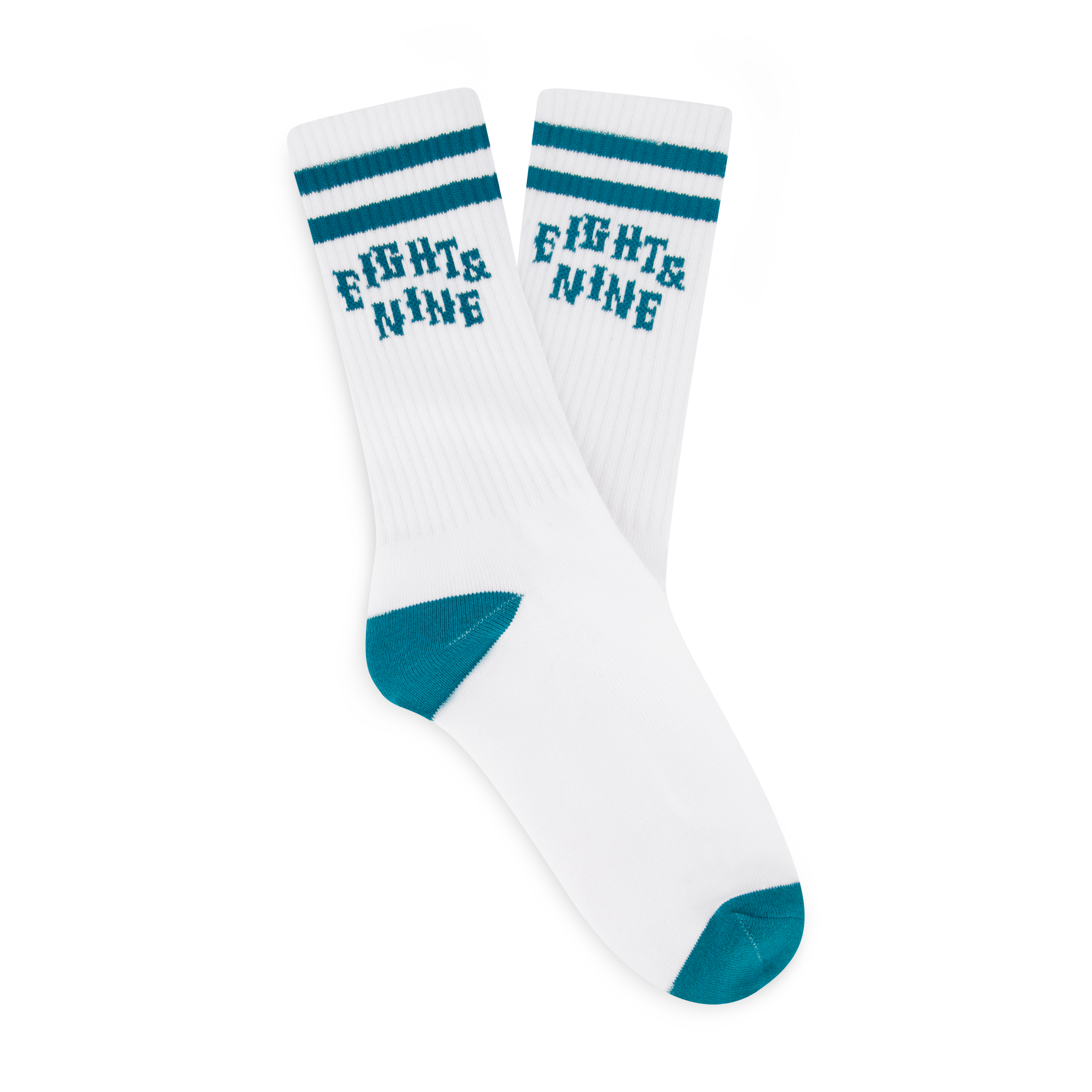 New Atelier socks in white with blue details! Super comfortable, mid length, mid weight socks for every day use.