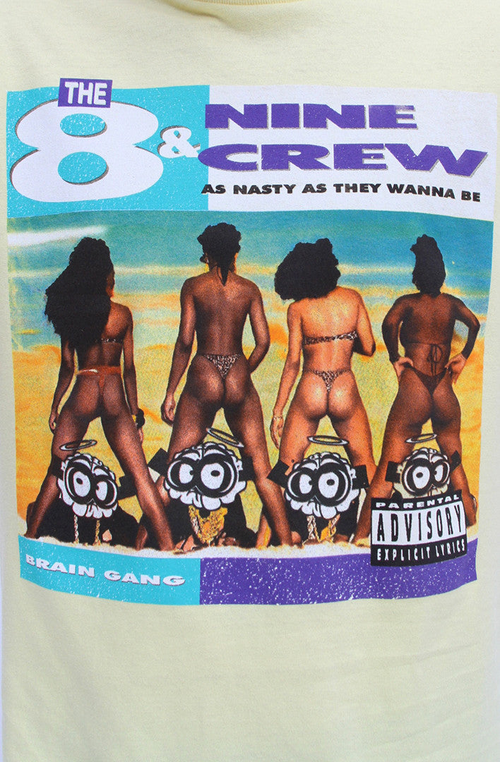 Nasty as we wanna be. Inspired by Miami, the classic album and brain. Banana/Multi. Definitely another great shirt to match Air Jordan Grape 5s. #8AND9CREW #BRAINGANG