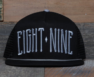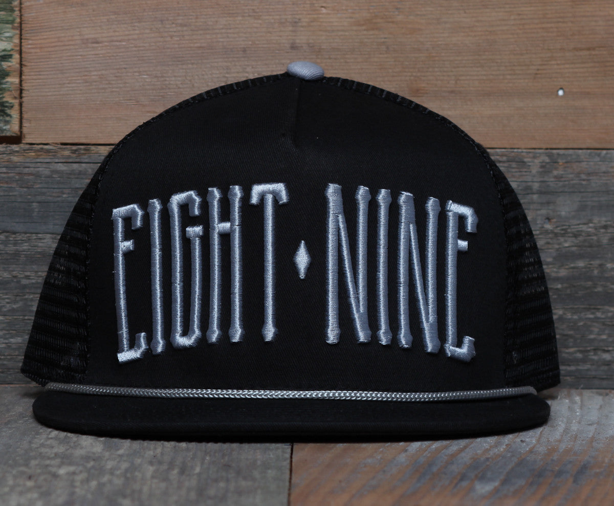 Mesh Trucker Snapback Black/Cement baseball hat w/ jumbo Eight & Nine print under visor. Perfect hat for Fall '13.