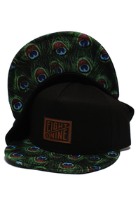 Black Peacock Print Baseball Hat w/ Strapback