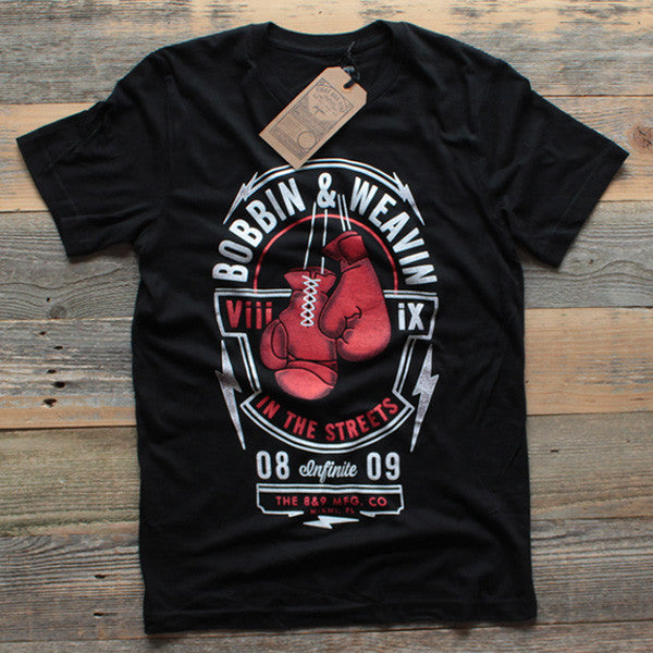 Continuously stay Bobbin' & Weavin' GFK inspired graphic. Super soft lux weight tee for Spring '14. Great choice to match any Bred or Fire Red sneakers.