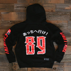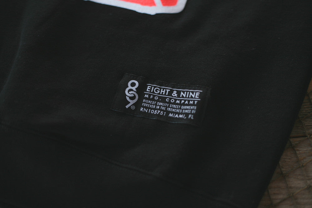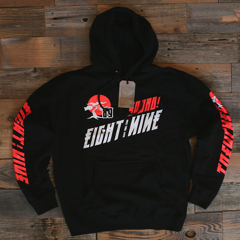 New pullover for holiday Miyagi & Danielson inspired Bonzai Hooded Sweatshirt. Giant front and back prints plus both sleeves. Black/infrared heavyweight hoody. #8and9life
