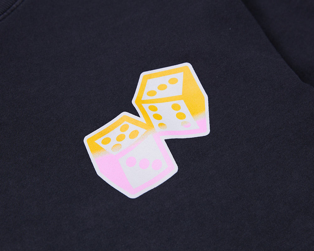 Alternate version of our Dice graphic. The Bop tee features a left chest and sleeve hits for the win! On deck in sizes Small to 4x!