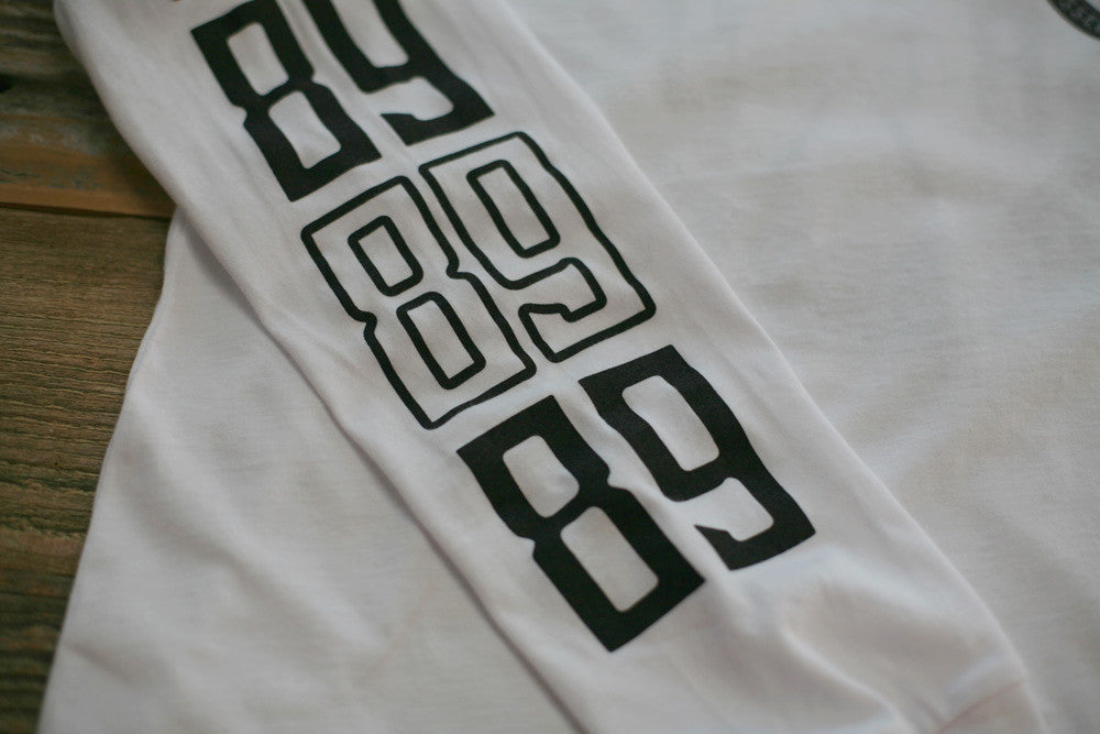 Winter '14. Simplicity reigns supreme. White premium cotton long sleeve with black print, left chest, back and both sleeves. Top choice for the season. #GFYSF