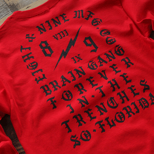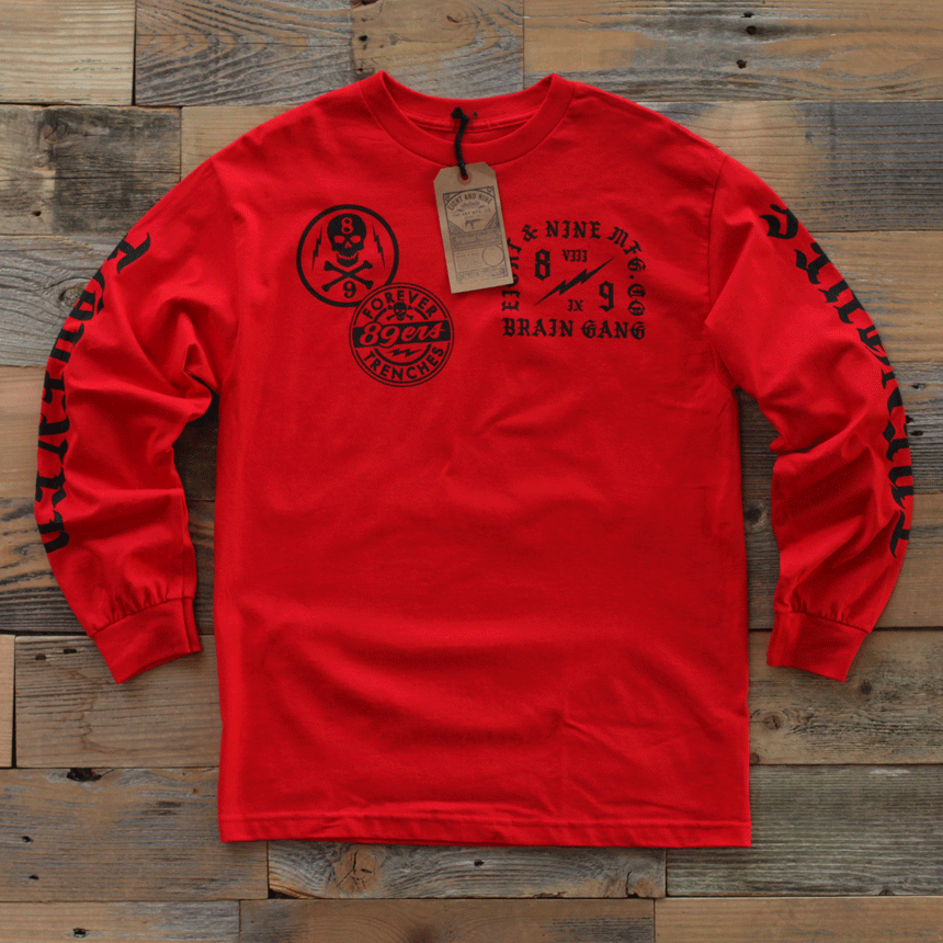 New for Spring '15. Brain Gang 4 Eva fire red long sleeve tee. BG Forever. Peep the details. Great shirt to match the BG 4 Eva Yard Sweats. #8and9life