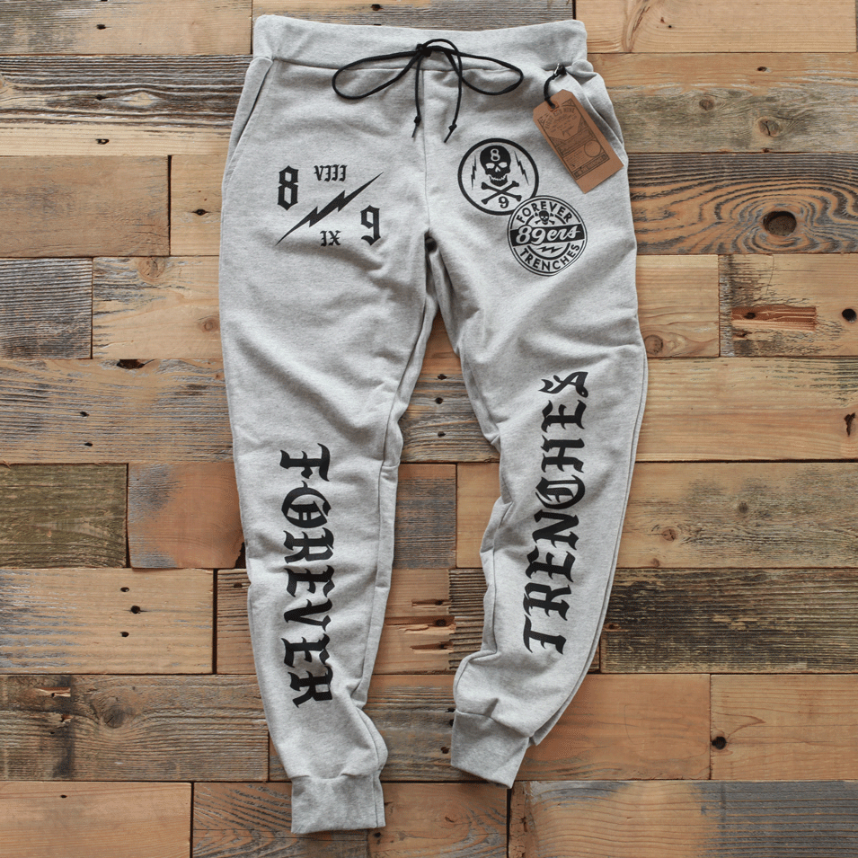 New for Spring '15. Brain Gang 4 Eva Yard Sweats. Classic cement color scheme. Super luxe 100% cotton french terry sweat pants made in the USA. Modern tailored fit. Slight drop crotch, great sweatpant to match the black BG 4 Eva heather long sleeve tee. #8and9life