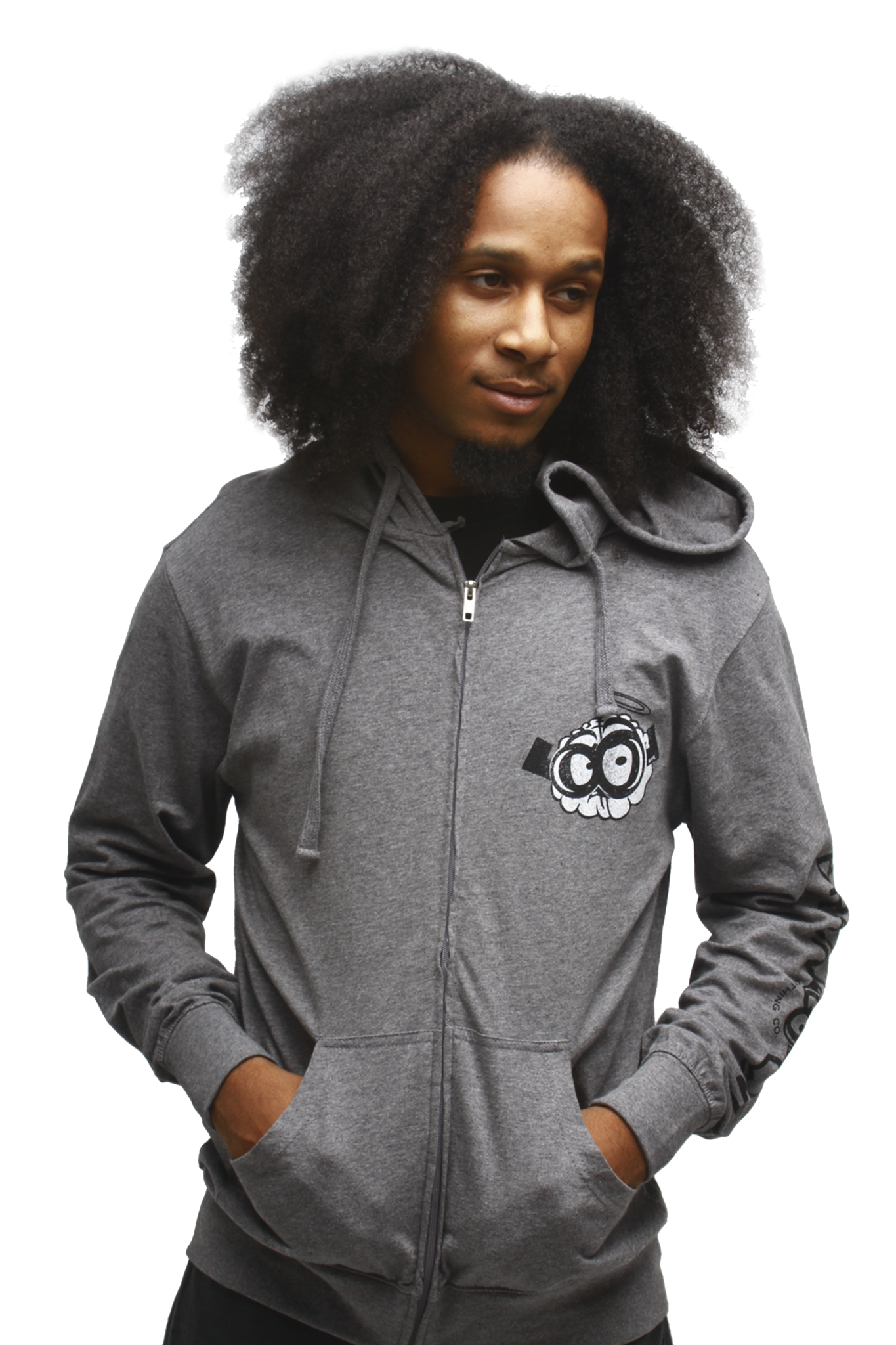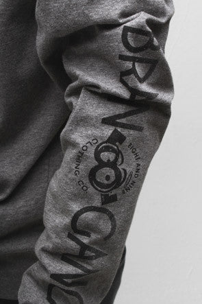 Brain Gang vintage logo on the dark heather zip up w/ the official Brain Gang sleeve print. Simplicity reigns supreme.