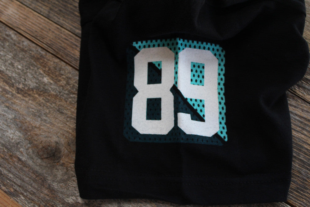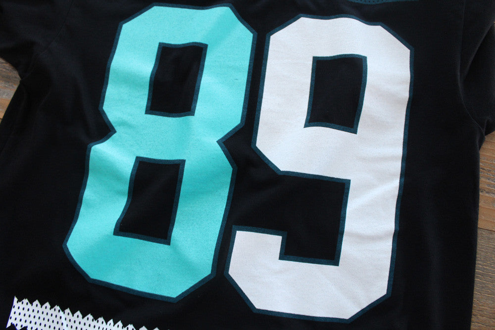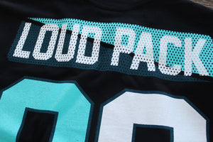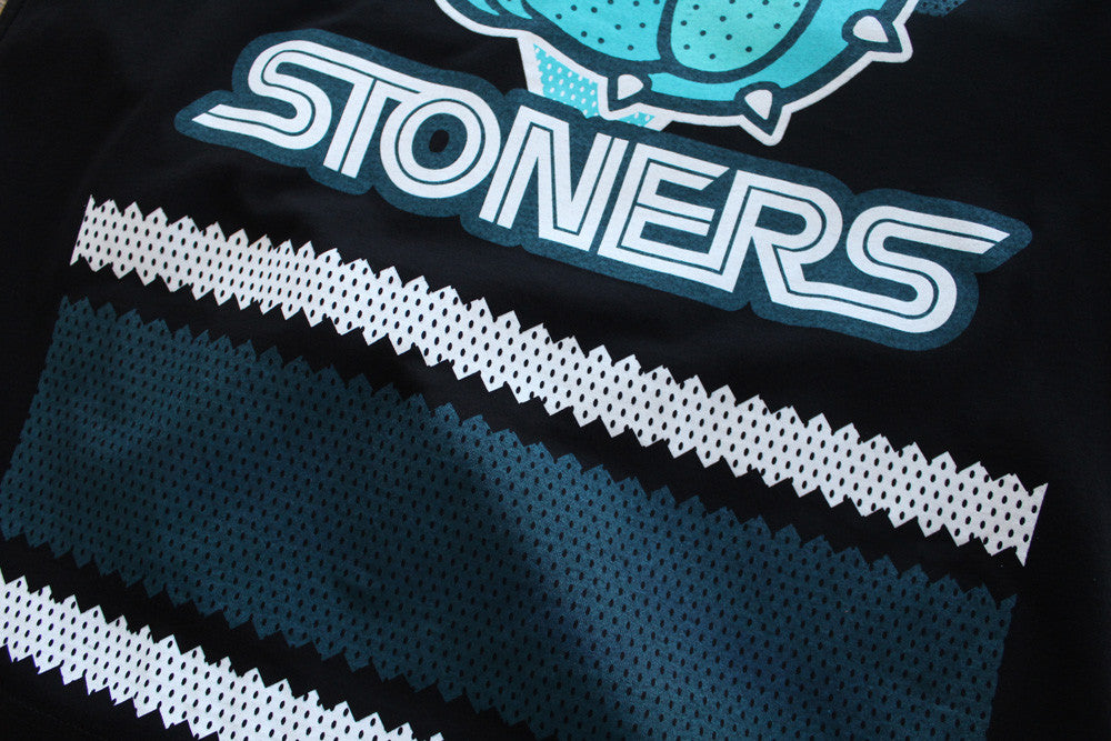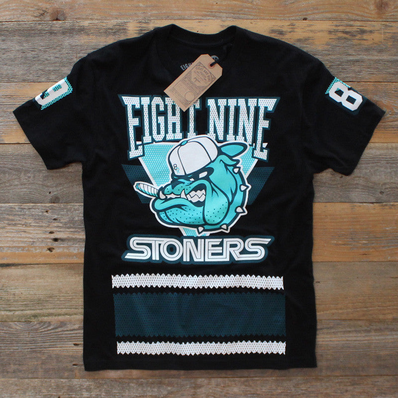 New to the shop for Spring '15. Black and tropical teal color scheme Stoner Bulldog graphic. This shirt matches the Jordan teal 4 2015 Release. Jersey styling, mesh details, Loud Pack name plate and more. Get this shirt to match Jordan Teal 4 and Jordan Teal 1s while supplies last.