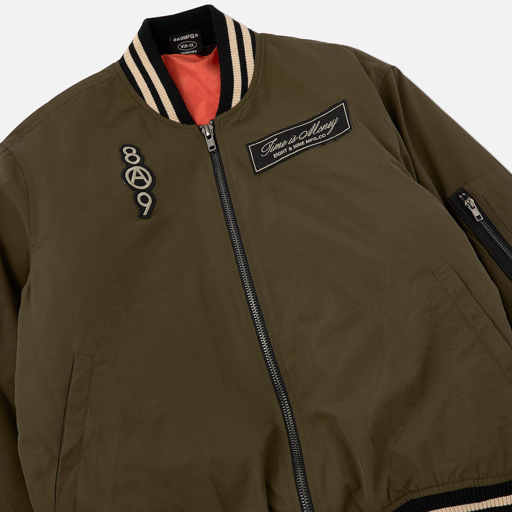 Time is the most valuable asset we have, don't burn it! All new Bomber with multiple embroideries and a huge embroidered back patch. This is a limited release, no restocks! Matches Air Jordan Retro 4 Olive and Jordan 5 Olive!