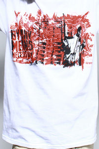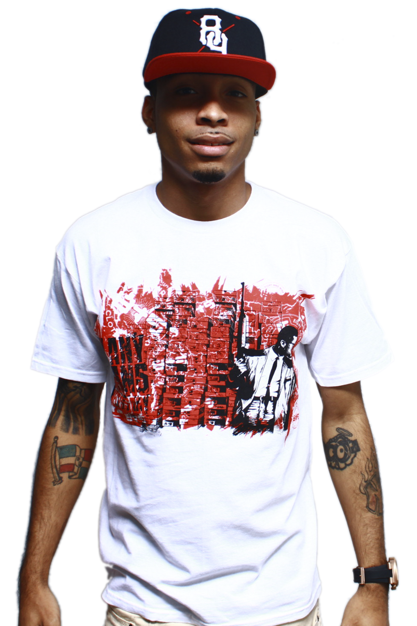 This By Any Means Necessary T Shirt inspired by the famous image of Malcolm X guarding watch is a perfect match for everything Fire Red including the upcoming Retro Jordan 5. Classic color way.