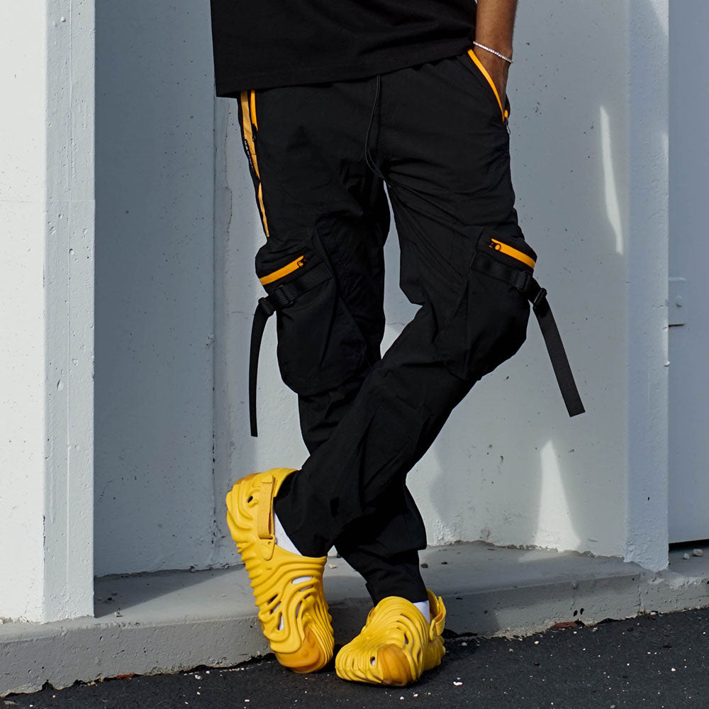 Our Campaign pants are the newest silhouette to our lineup of Nylon pants designed to showcase and elevate your footwear. Velcro ankle closures take this cargo from slim to baggy with a flip. This cargo is cut from lightweight nylon with a balanced fit between loose and slim. 3d pockets throughout, strap closures, high grade waterproof zippers and room to stash just about anything. Wear these with our Off Shore jackets or grab one of our hoodies and you're good to go!