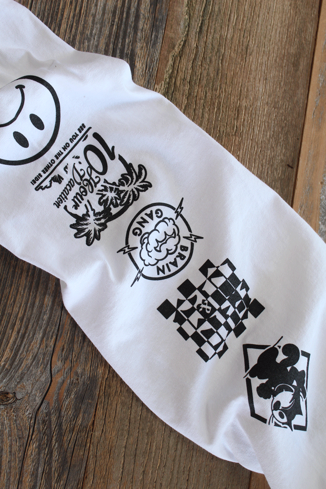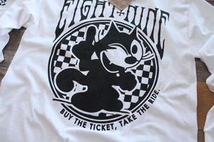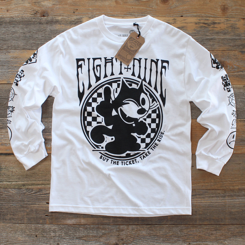 Long sleeve, 'Cid Cat Jersey Tee. "Buy the ticket, take the ride" classic spring white and black color scheme. Front back and both sleeve hits. #8and9life