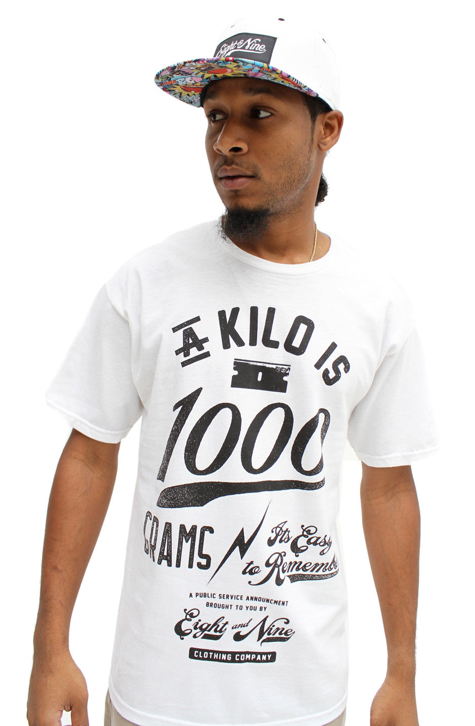 New color for Summer '13 Thousand Grams graphic in white/black. Design Inspired by Ghostface Killah's Kilo record off the Fishscale album. Ghostface sampled, Jimmy Vann and Richard Hieronymus I Weigh With Kilos. All around the world today a kilo is 1000 grams, it's easy to remember. #8and9life Wu-Tang Also a perfect shirt to match Jordan Concord 11 or Black/White Jordan 11 Low.