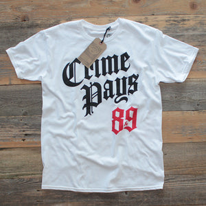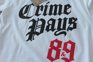 New Crime Pays shirt to match everything Fire Red and the Black Toe Jordan 14. White / Black / Red super classic color scheme. Crime Pays graphic. Get yours. S-4X available while supplies last.