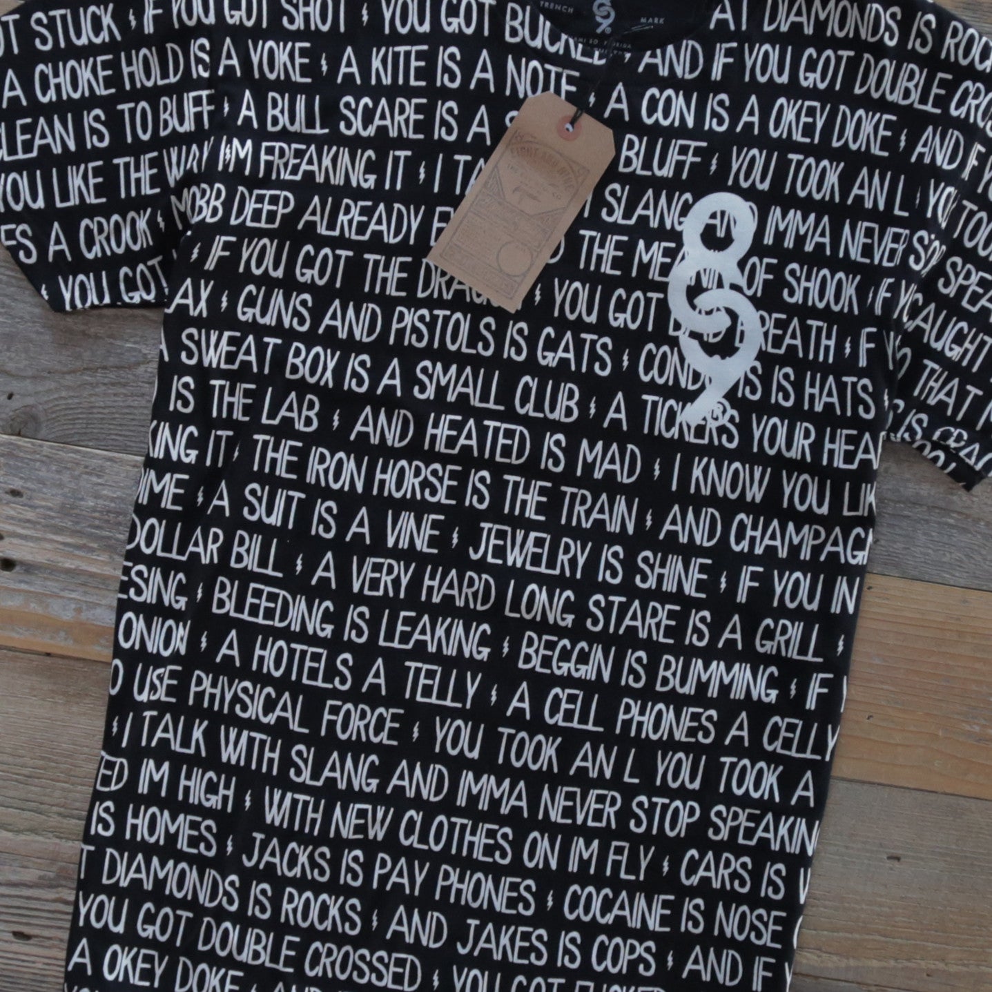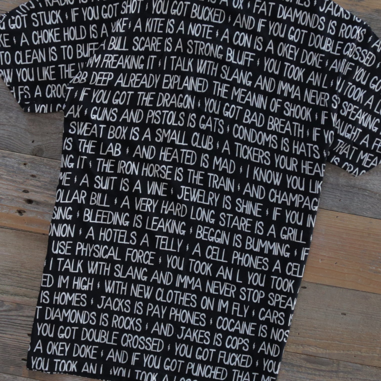 "I talk with slang and I'ma never stop speaking it." Ebonics, Big L, masterful wordsmith. All over print. Super premium black wingspan cotton. Get them while they last. NO RESTOCKS Manson.