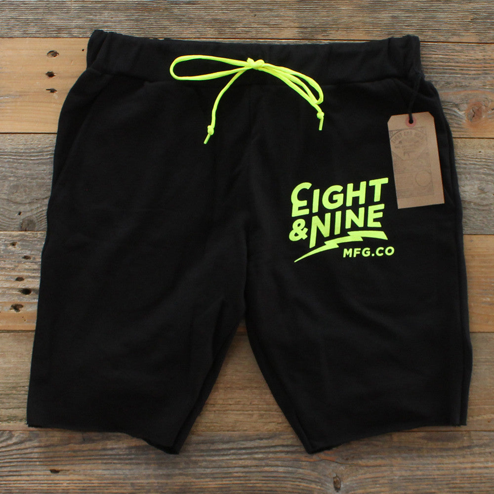 New for Summer. Cut off french terry shorts. Simplicity reigns supreme. Cruise logo in volt on premium black terry. Super luxe 100% cotton french terry shorts made in the USA. Modern tailored fit, cut off styling w/ raw edge. #8and9life