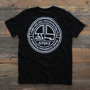 Delinquency tee with left chest and full back hit. Super clean. Stand on couches vibe. Classic black and white color scheme. Sure to be a staple in your line up. Grab one while you can. S-4X