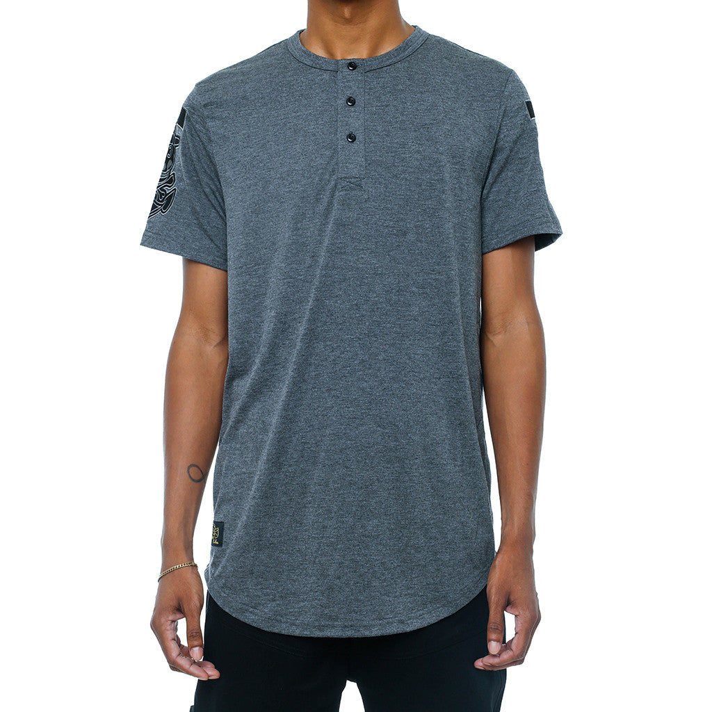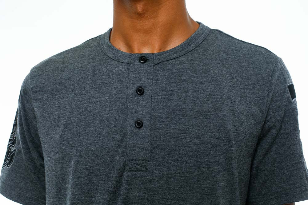 Bet on yourself. The Dice Henley is the way to go. Think of it like a tricked out t shirt that can get you a table at STK. A classic look this Henley has a pair of giant sleeve patches and the dice woven to get you on the next level. Ample length, and a curved hem, premium mens fashion tee, this premium cut and sew garment is made from super soft ring spun cotton.