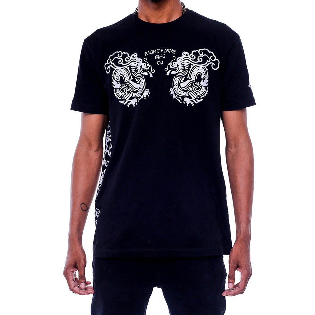 "No Rice, No Ribs, No Champagne." You should know the inspiration for this one. Chinese take out styling, metallic silver on black, peep the side details. Super dope. Limited Release, no restocks! Get yours. Perfect shirt to match anything metallic silver, Foamposites, or Jordan 5.