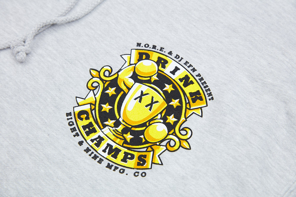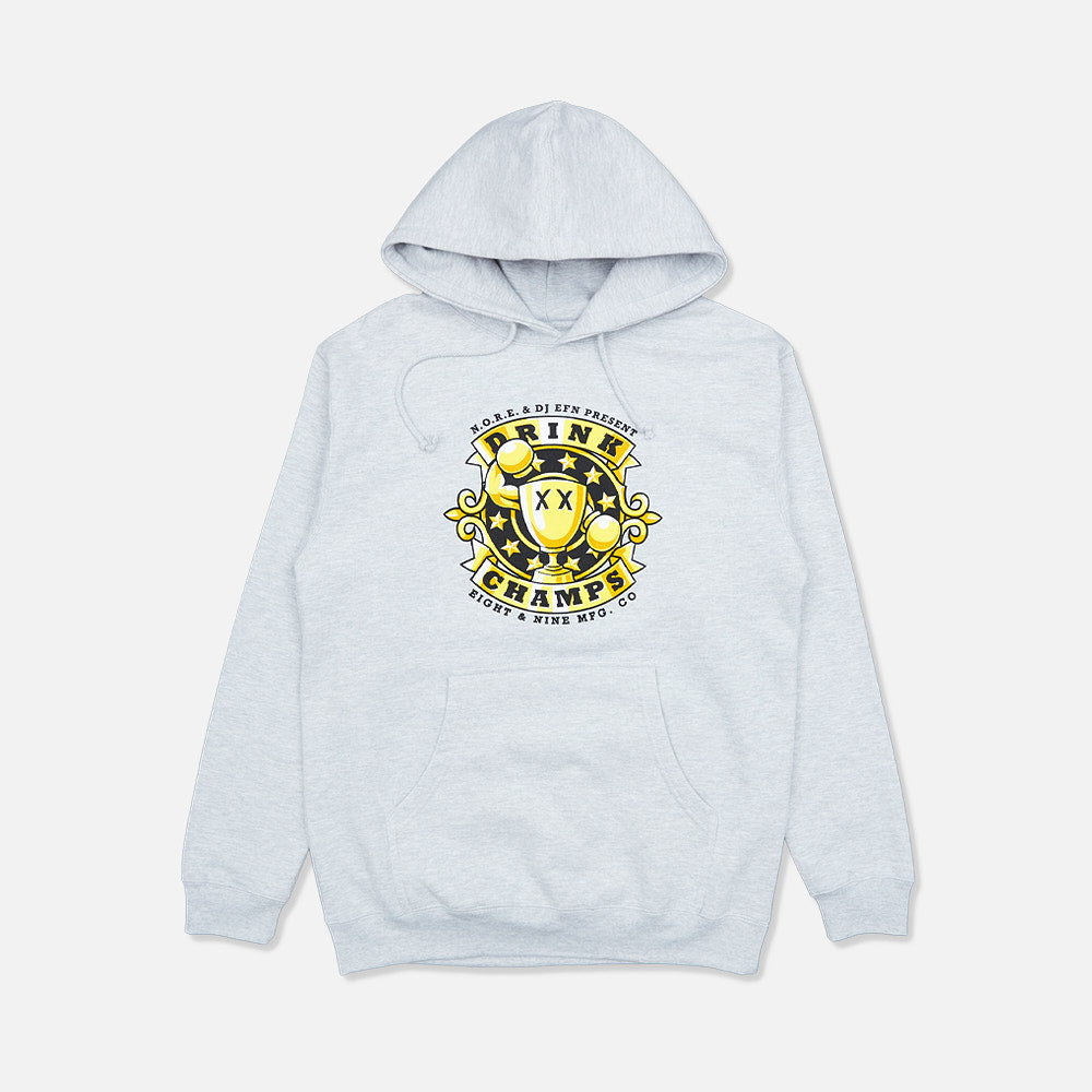 Make some noise! The original Drink Champs Hooded Sweatshirt! OG Design with huge black, white and gold Drink Champs x 8&9 MFG logo on our all purpose hoodie! This is a must cop for any Drink Champs Fan!