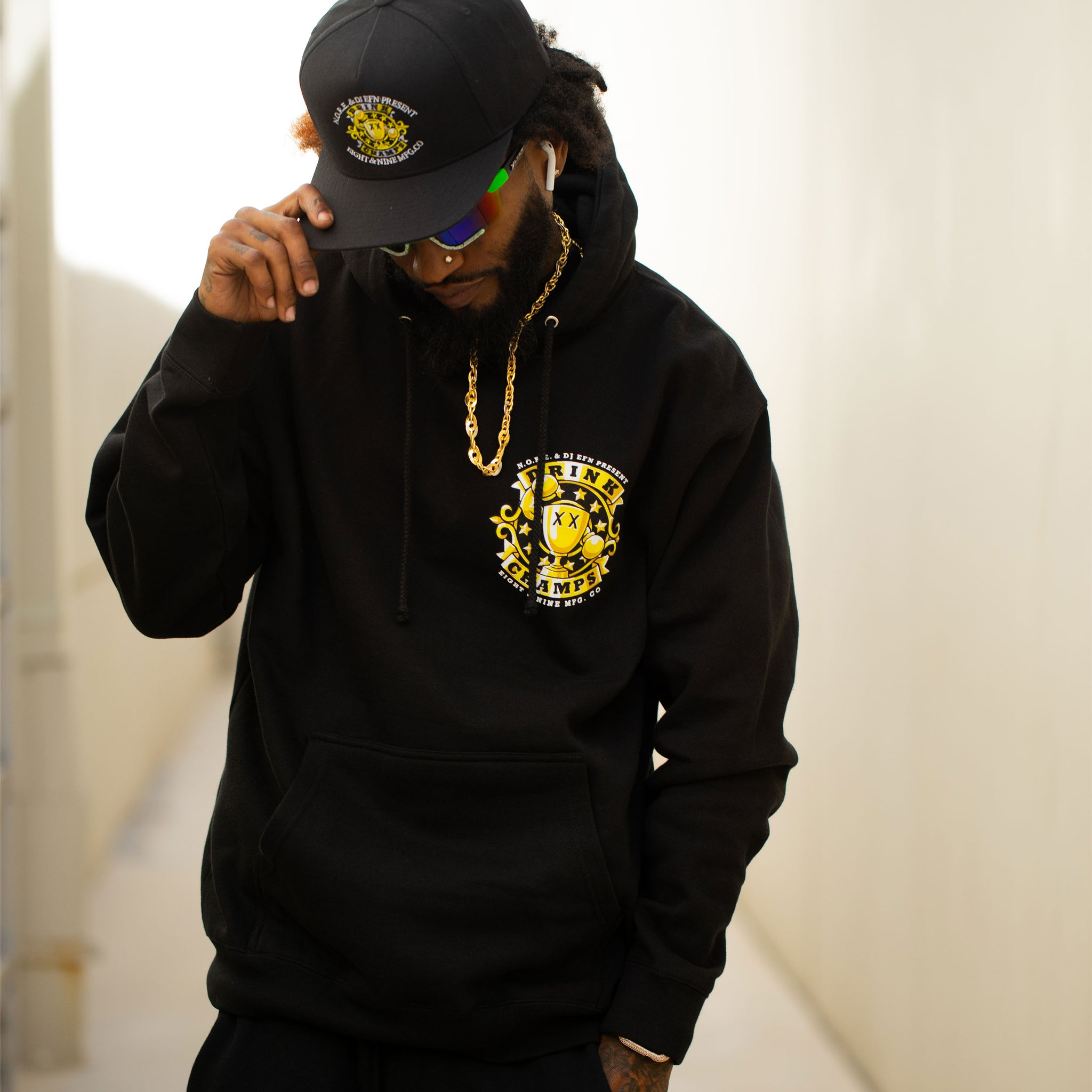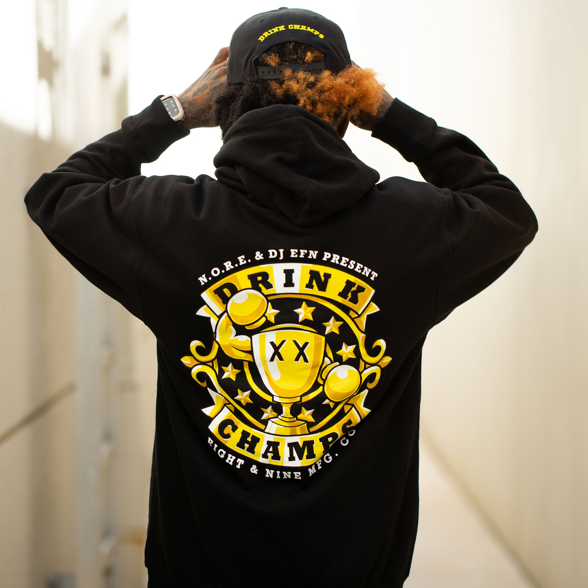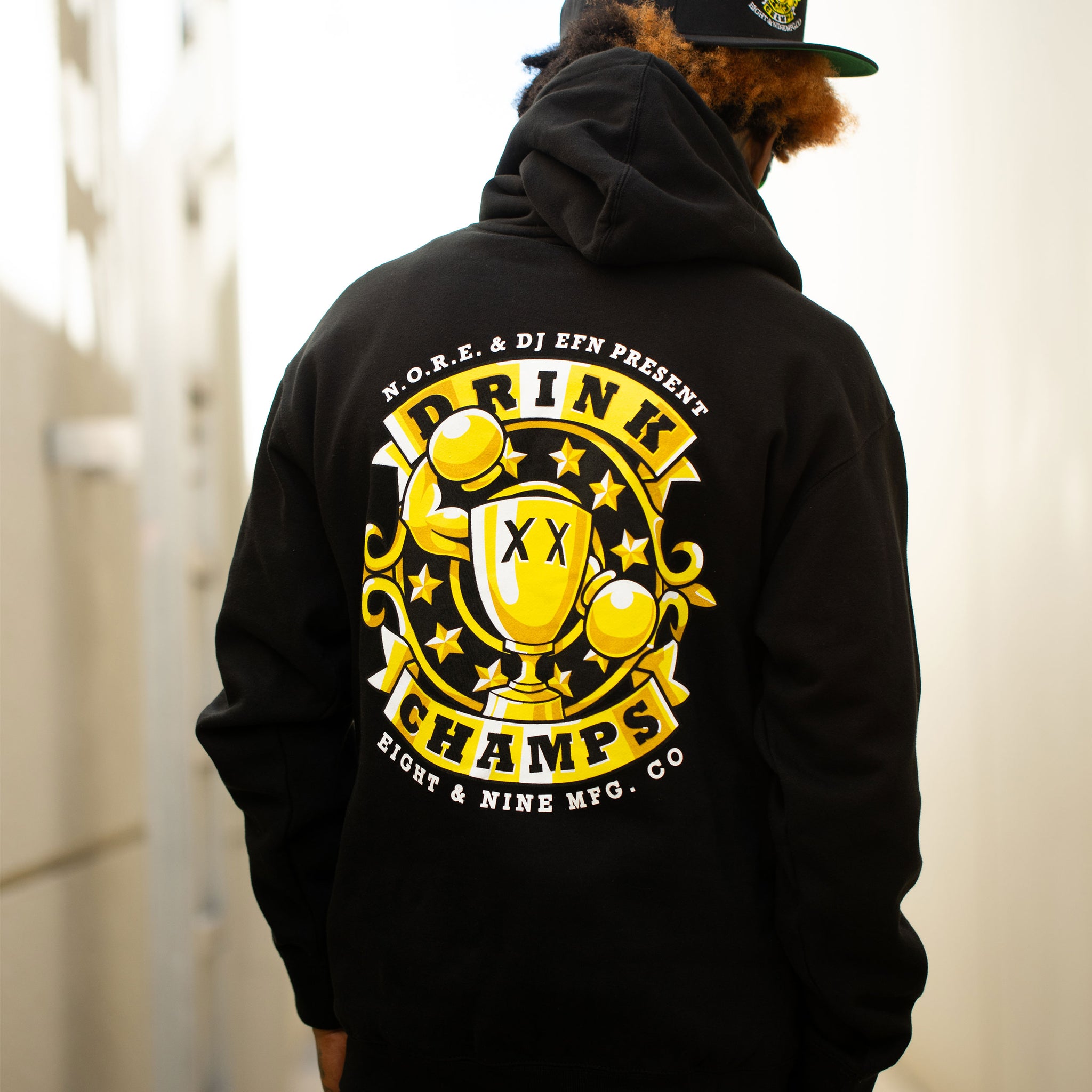 Make some noise! This new Mini Logo Drink Champs hoodie features the OG logo on the left chest with a huge back print! This is a must cop for any Drink Champs Fan!
