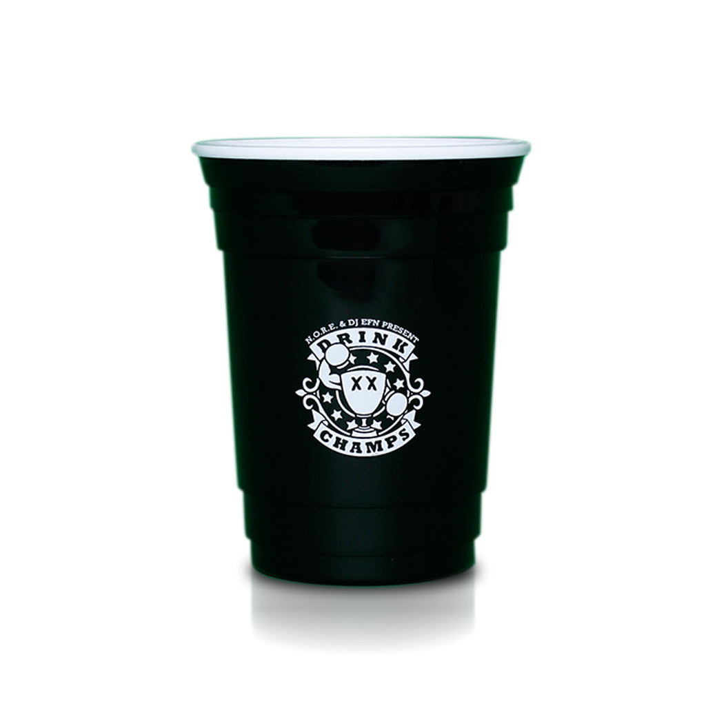 The official Drink Champs party cup. This is the luxe version, double wall, insulated, heavy duty, reusable, 16 oz. stadium cup. Black with the Drink Champs Army logo. Fill your cup while you listen to N.O.R.E., DJ EFN chop it up with legendary guests over drinks. Nothing is sacred on Drink Champs! New episodes drop every Friday. Listen at DrinkChamps.com