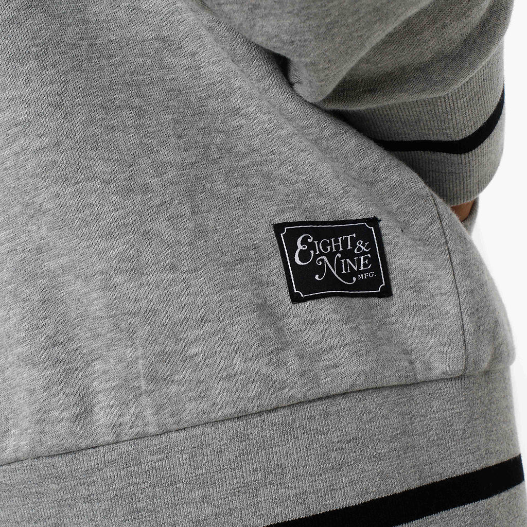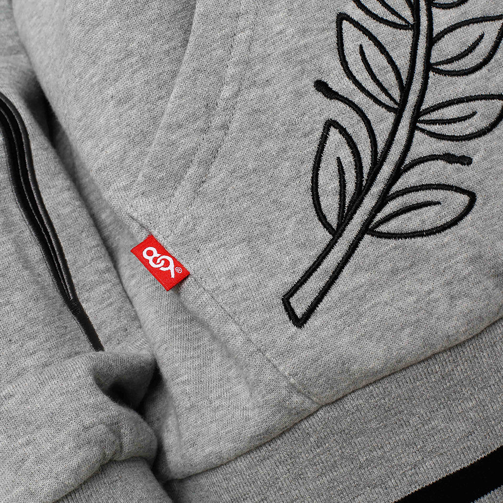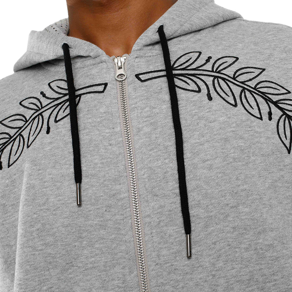Premium cut & sew hoodie, completely tricked out and built from the finest fleece man can source, heavy black and grey embroideries on the chest, sleeves and lined hood. The Eulogy Embroidered Hooded Sweatshirt in heather grey is a men's streetwear staple, this premium hoodie is well tailored with all the next level details. Check it out. You need one.