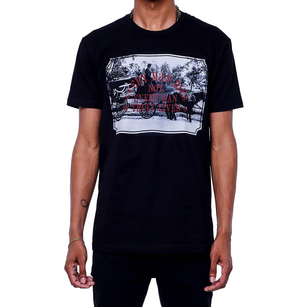 "Every man dies, not every man truly lives" wise words from the Rebirth Collection. This is a classic mens t shirt for Summer 17. Black cotton tee with maroon and white print. Make sure to get one while you can.