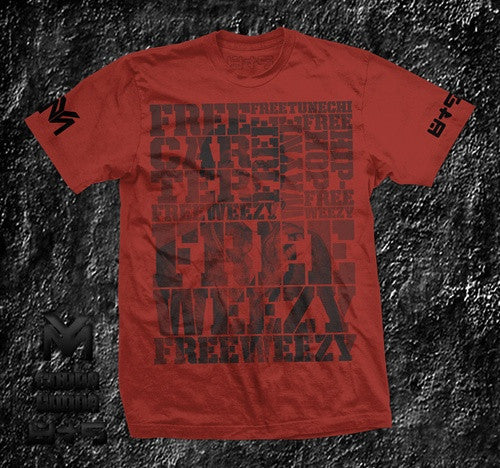 Lil Wayne is coming home soon! In the meantime, grab your new Red / Black color of the official Free Weezy T Shirt 8and9 x Gudda Gudda Young Money The countdown to Lil Waynes release from prison is underway. November 4, 2010 Lil Wayne will be released from Riker's Island. Celebrate Wayne's home coming with your Free Weezy Shirt.This graphic is part two of the 8&9 collaboration with Gudda Gudda of Young Money. Straight forward, simple but bold; we designed this shirt to capture the essence of this Free Weezy movement. Free Wayne, Free Weezy, Free Tune, Free Hip Hop the shirt itself speaks to the welcome home celebration for Young Money CEO & Artist Lil Wayne. This shirt was also featured in the Lock My CEO Up video feat Waka Flocka we recommend you purchasing one! Shipping in the US is free! More colors coming soon. Also, here is a link to a free download of Back 2 Guddaville courtesy of Gudda Gudda (Hosted by DJ Ill Will & DJ Rockstar) - Mixtape by Gudda GuddaAs always you can expect the 8&9 Signature Fit Short Sleeve Crew Neck T-shirt - Constructed with side seams for perfect no twist drape. You'll appreciate the cut right before you become addicted. PRESHRUNK Impeccable quality 6 oz. 100% Cotton. Double-stitched. Shoulder-to-shoulder tape. Street Wear, underground, hip hop, skate inspired clothing by Eight & Nine Designs.8&9 Clothing: Redefining style, thought and motivation.