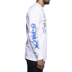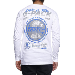 Classic color scheme. Three Am Racing inspired. G Pack LS T Shirt. FTP, peep the details on premium white ring spun cotton. "Son, I'm on the bench high eating chicken wings and french fries..." via Cormega
