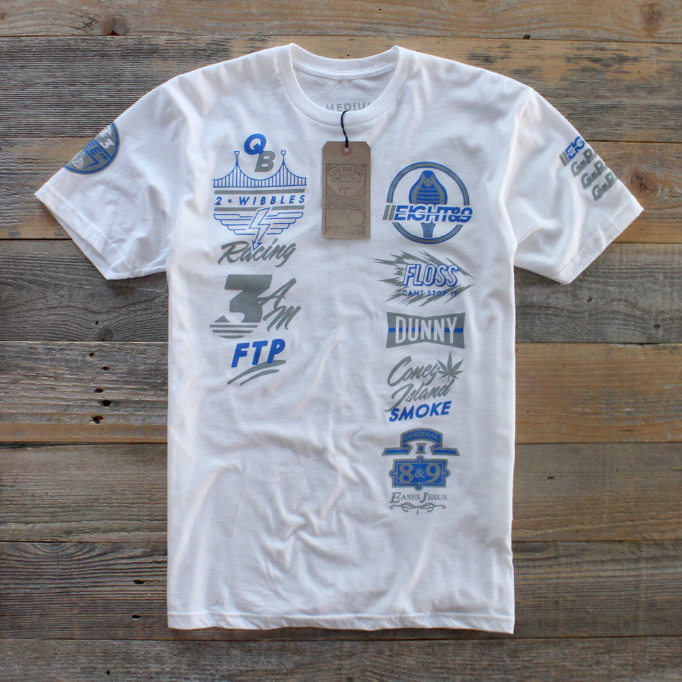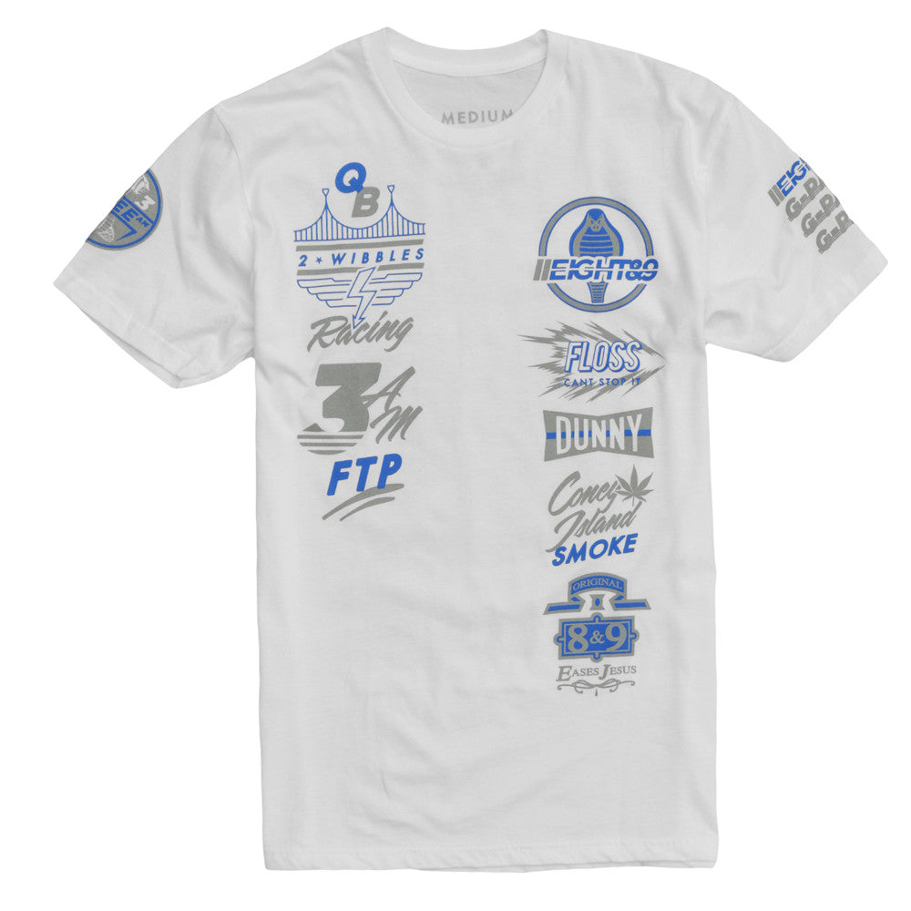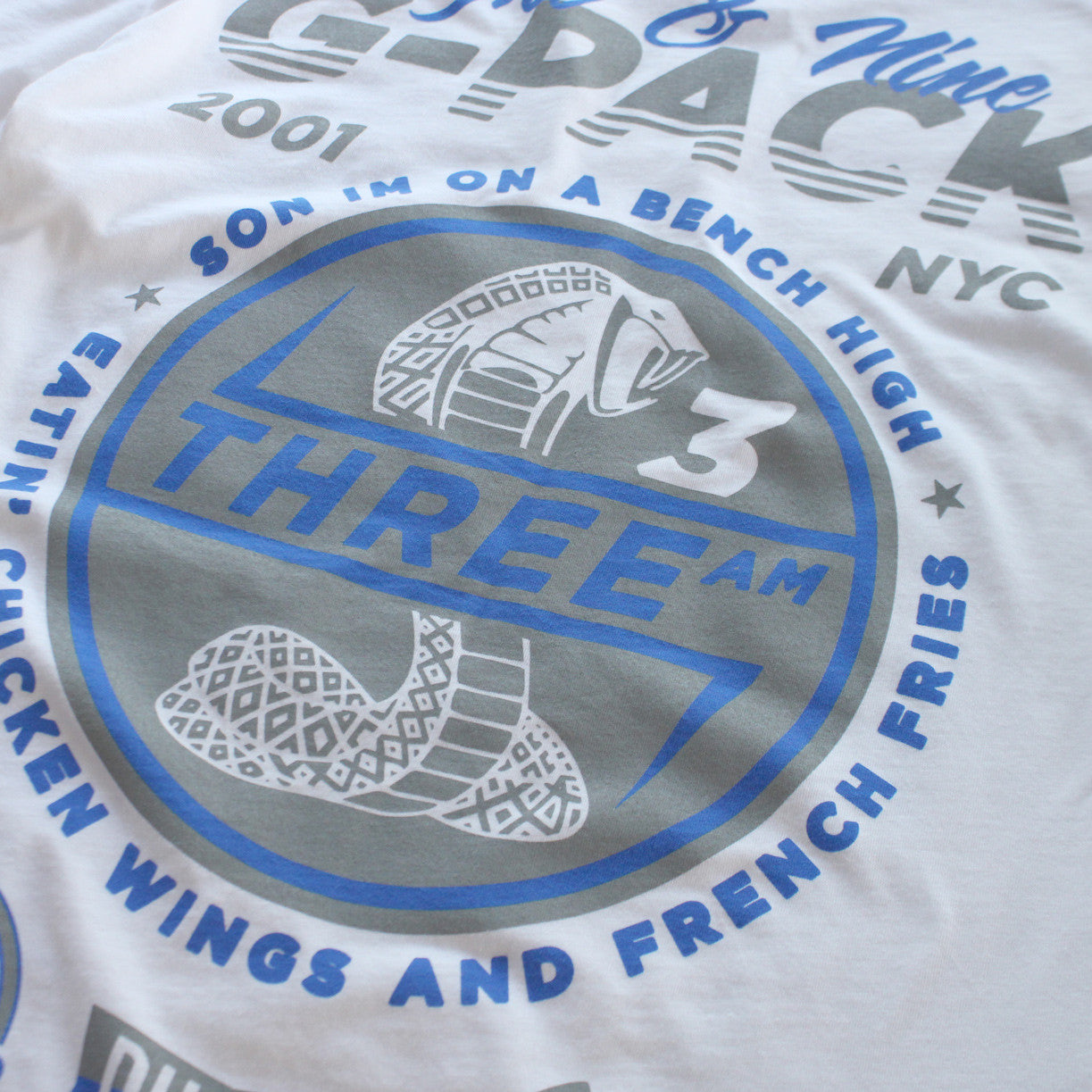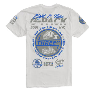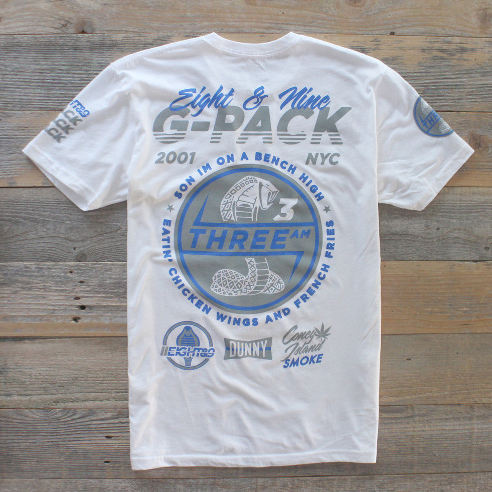 Three Am Racing inspired. G Pack Tee. FTP, peep the details on premium white ring spun cotton. "Son, I'm on the bench high eating chicken wings and french fries..." via Cormega