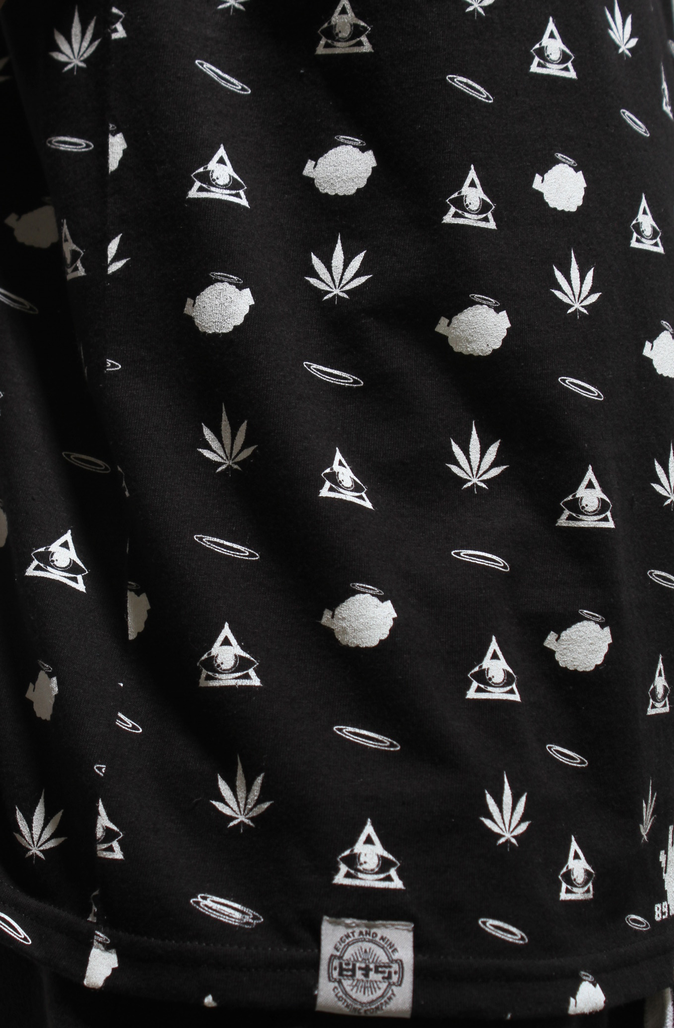The concept of this one is pretty simple. If you remember Japanese video game maker Namco and Galaga you're OG status. This is an all over remixed Galaga print. #8and9life