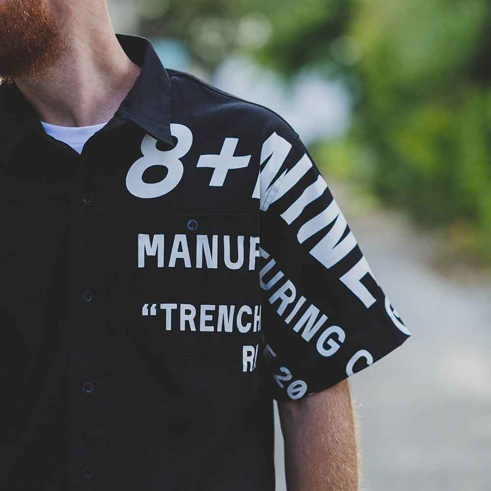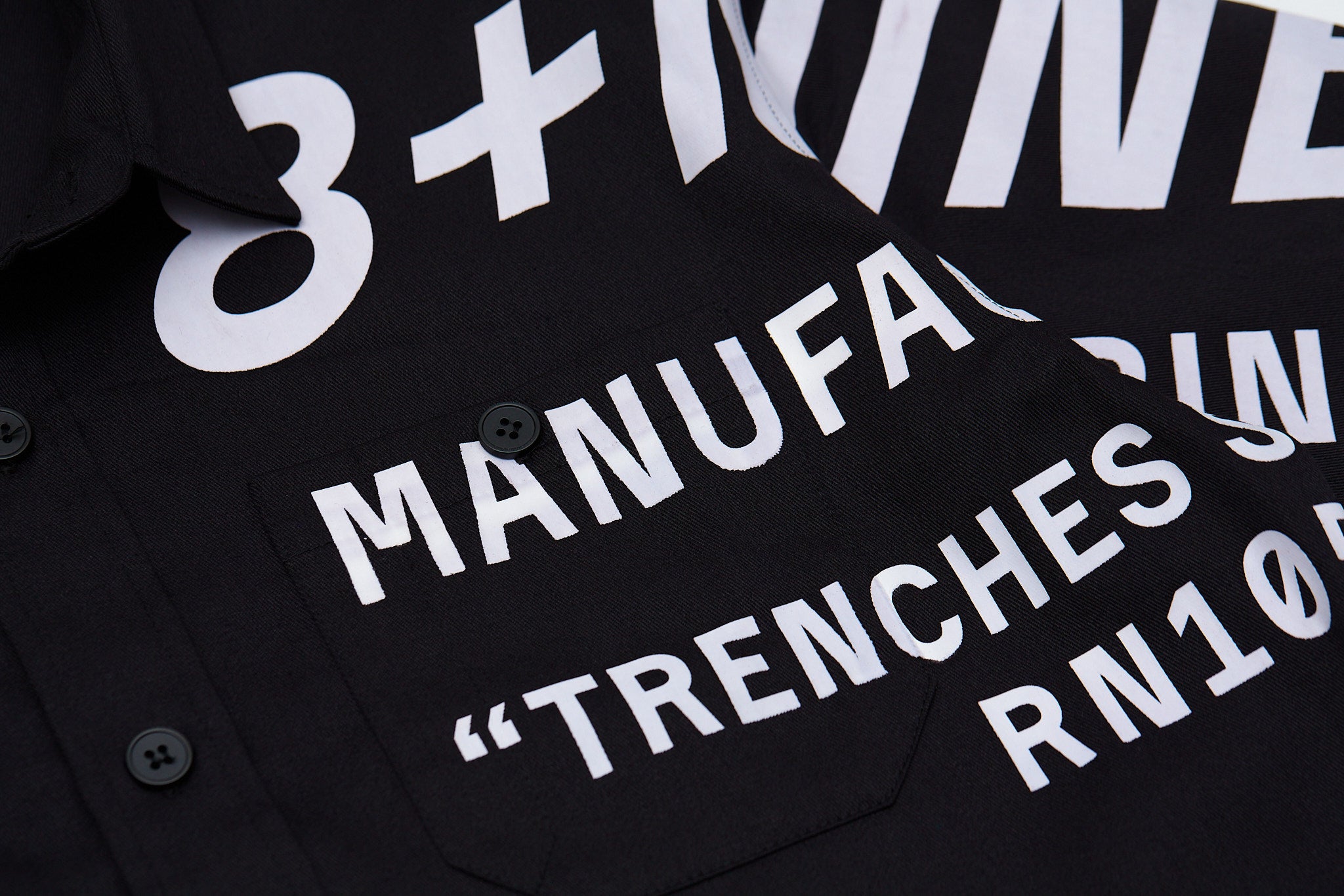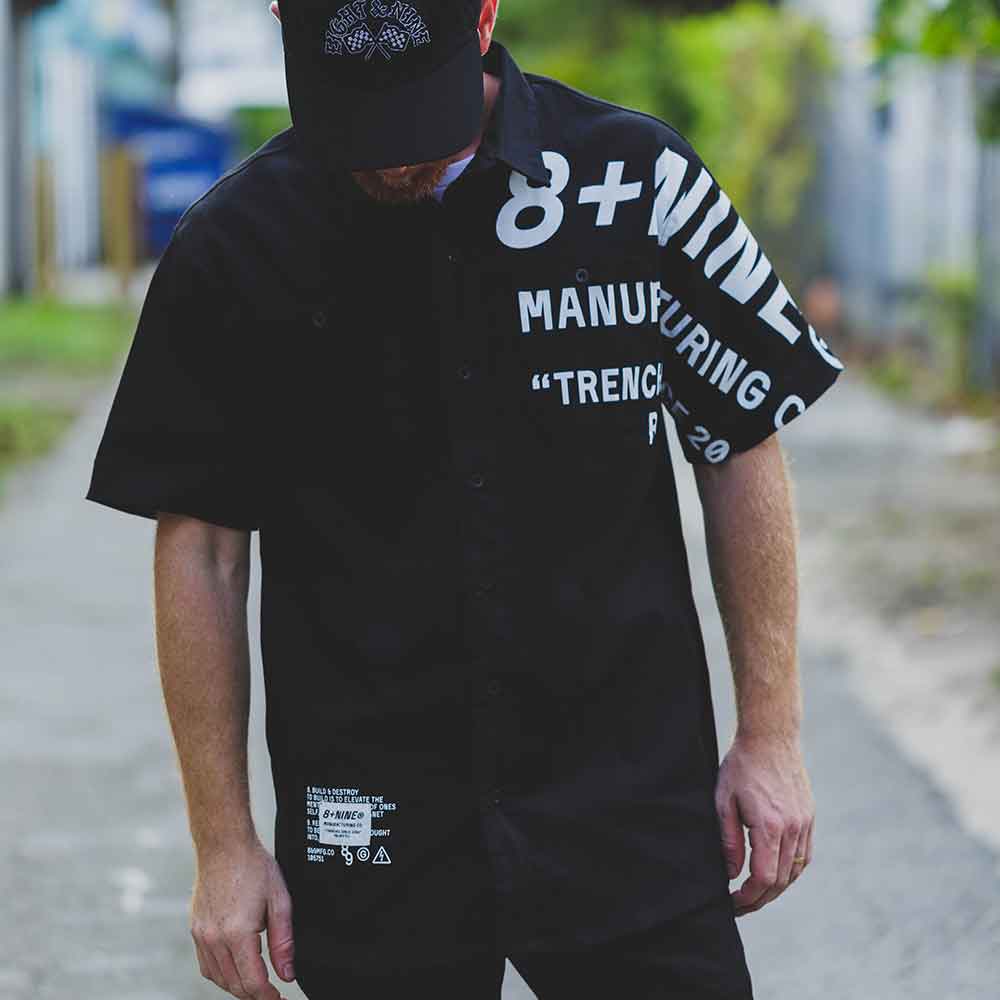 Do it big with our latest work set! Huge 8&9 MFG print on this premium cut and sew button up shirt. Gargantuan sets available in 2 colorways!