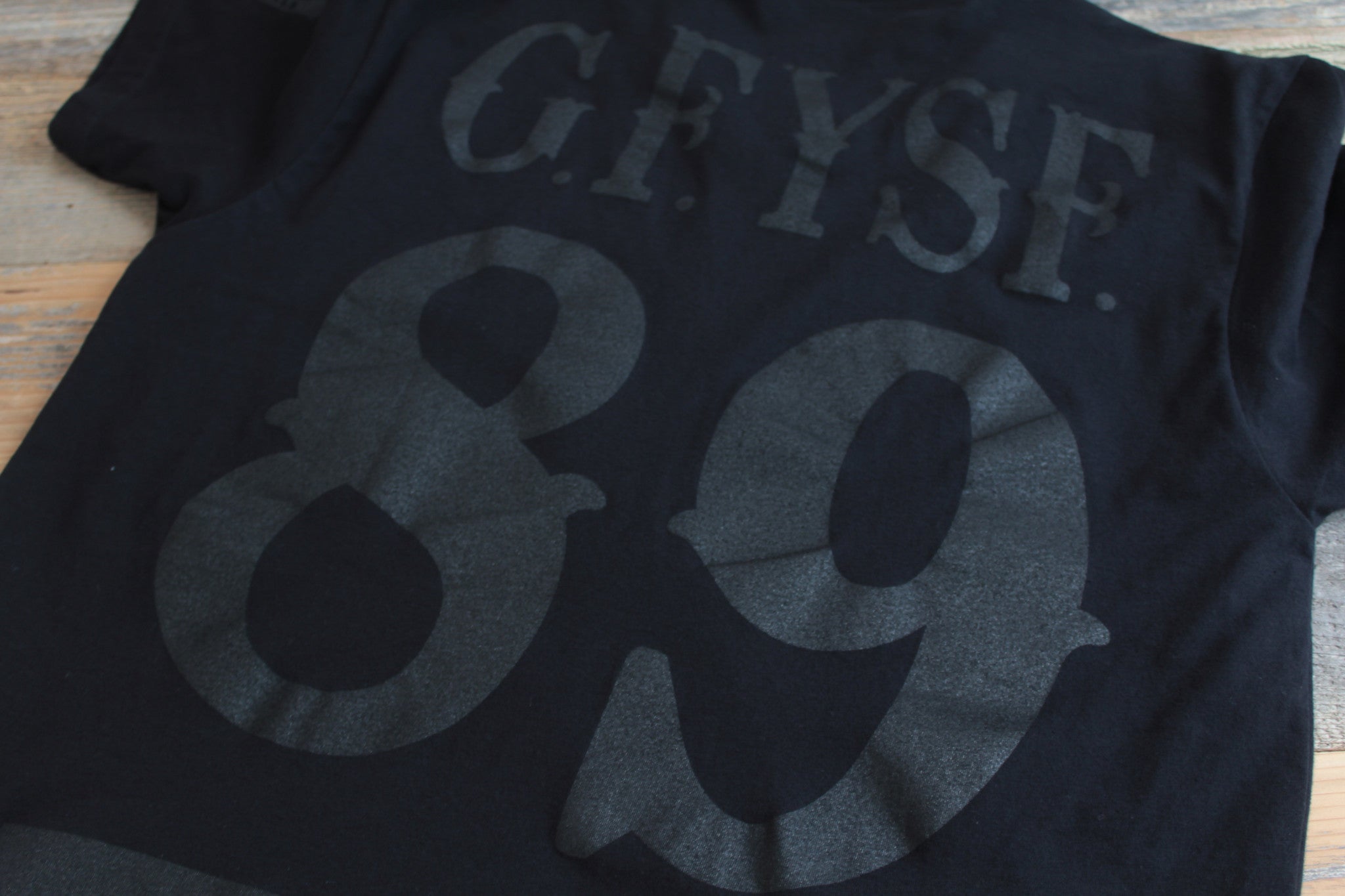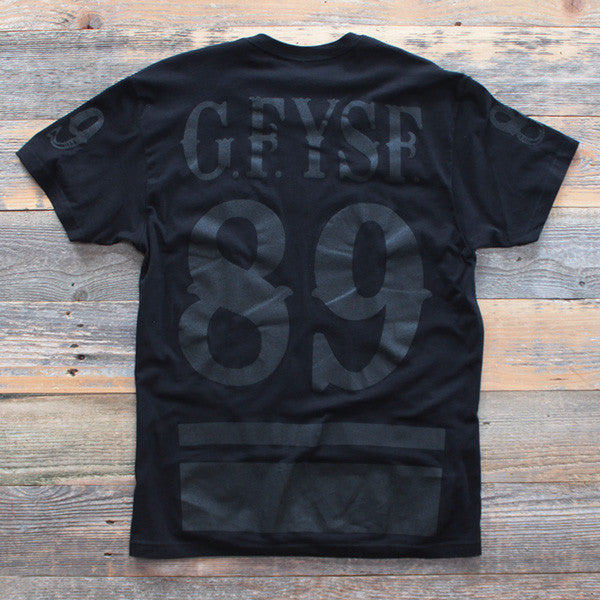 Soar with eagles. The latest GFYSF jersey in stealth classic black on black. Huge 89 back print, sleeve emblems, jersey stripes and GFYSF name plate.S-4X available. Perfect shirt to match Nike Air Foamposite Black Stealth.