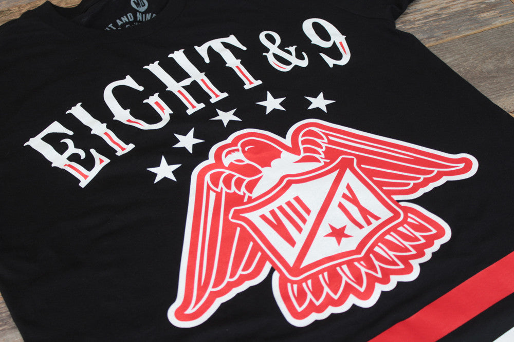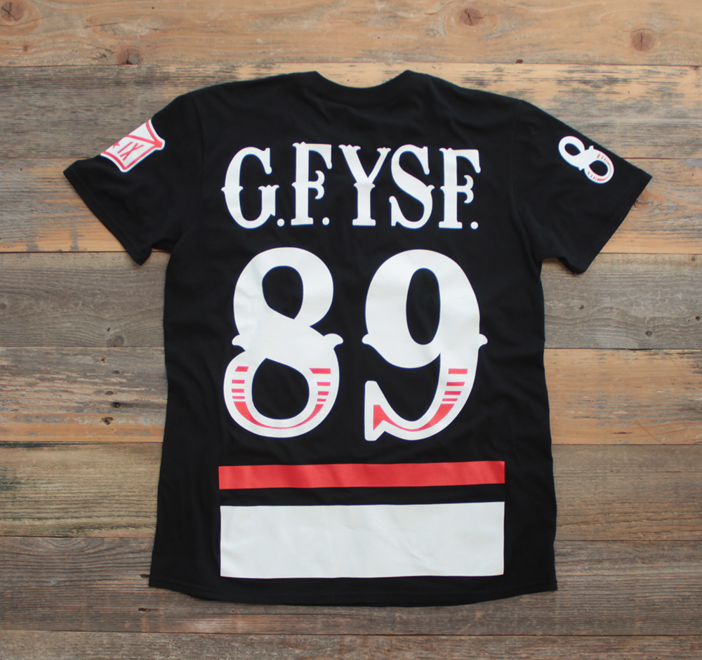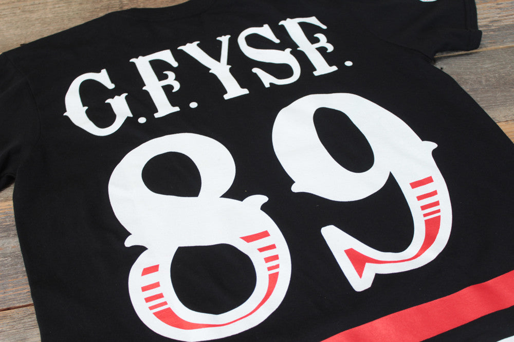 New for 2014 hockey inspired GFYSF Jersey Tee in a classic bred color scheme. Perfect to match Jordan Bred 11. Soar with eagles. Get yours before it's gone. Giant back #GFYS print and number 89. #8and9llife S-4X
