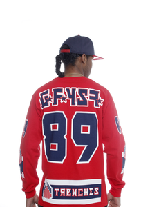 CSKA inspired long sleeve hockey jersey tee. A tribute to the greatest game on earth G.F.YSF Jersey. Classic Red/White/Navy color scheme. Giant back #GFYS print and number 89. #8and9life Get this one while you can. S-4X