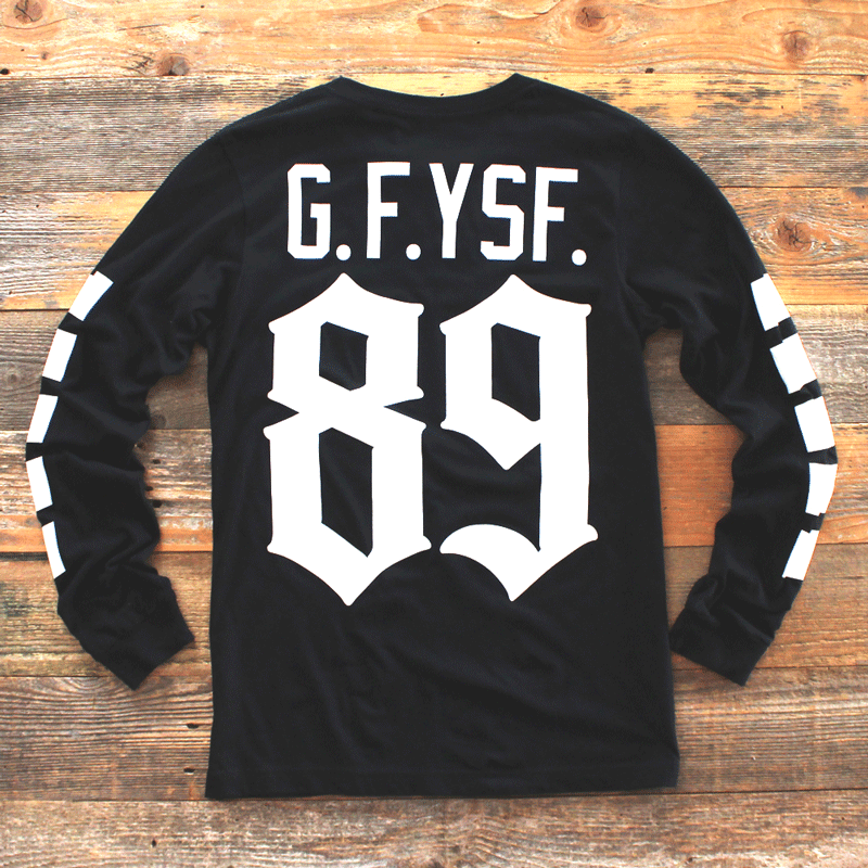 New for Spring '15 Team Goons remix premium long sleeve jersey. Super classic black/white color scheme. Left chest, two sleeves and the jumbo back. G.F.YSF. name plate. #8and9llife Get this one while you can. Certainly won't last long.
