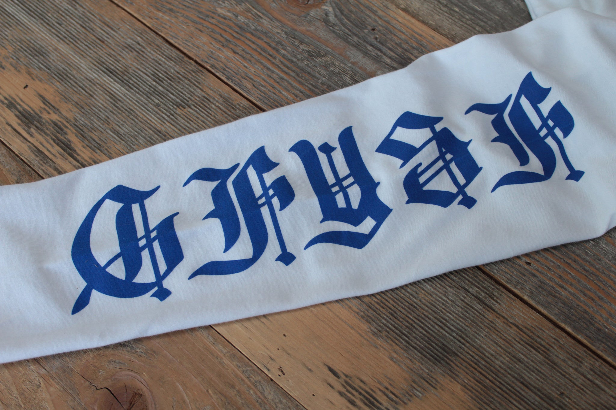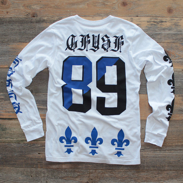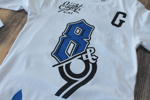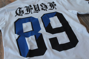 Remix! Hockey inspired Goons jersey tee. Nordiques style jersey featuring giant 89 back hit, GFYSF name plate, chest and sleeve crests. This is the perfect shirt to match Air Jordan Sport Blue 6. S-3X